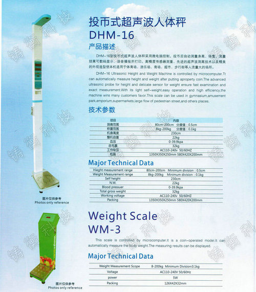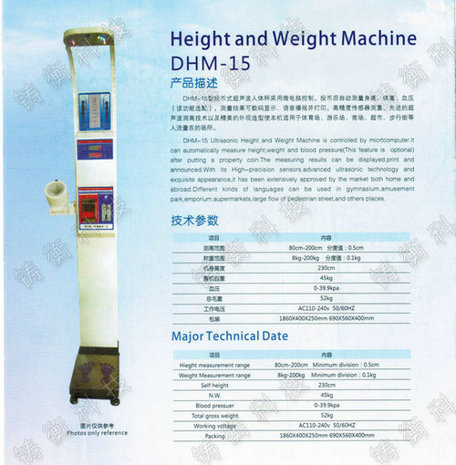 我們公司銷售的 快速測量身高體重標(biāo)準(zhǔn)人體秤,藥店門口投幣體重稱簡稱體重秤,體檢秤。體重秤采用當(dāng)今國外流行的簡潔、大方、時尚的設(shè)計概念,外形新穎,美觀大方,改變了傳統(tǒng)身高體重秤的笨重形象!其外觀豪華,無論您是放在學(xué)校、賓館、醫(yī)院、洗浴中心、或是酒店,都將會成為一個吸引眼球的新亮點!歡迎對我們公司的體重秤感興趣的客戶隨時點擊這里致電我們銷售進行購買!