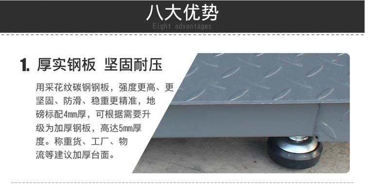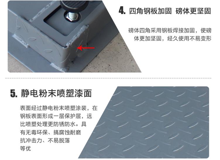 2、地磅秤材質(zhì)為:碳鋼,防滑咬花型臺(tái)面設(shè)計(jì);