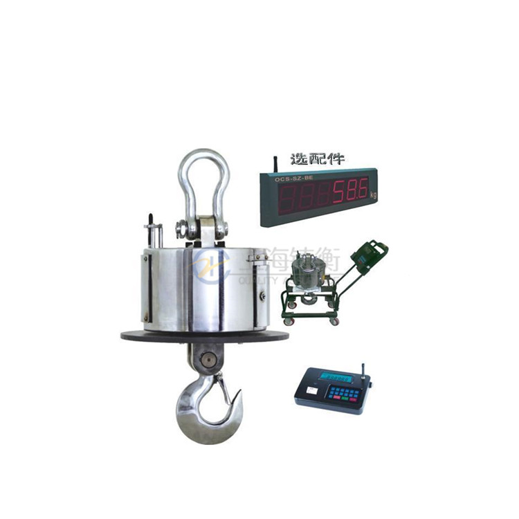 • 15噸電容式吊秤,防爆不銹鋼大量程吊秤 上海鑄衡的這款 15噸電容式吊秤 是稱重傳感器、秤體和稱重顯示控制器3部分構(gòu)成一個(gè)整體,由可充電電池供電 , 沒(méi)有拖曳的電源線。將電子吊秤掛在起重機(jī)械的吊鉤上即可稱重,被稱物質(zhì)量直接顯示在電子吊秤上。它需要在稱